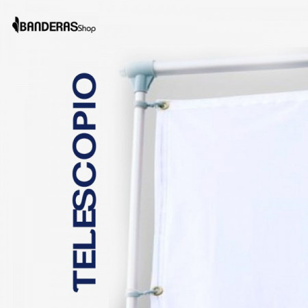 Bandera publicitaria vertical para mástil telescópico, 3x1,20m. Tela 100% poliéster 115g/m2, especial para exterior. Arriba cinta de refuerzo y 4 ollados. En lateral izquierdo cintas de refuerzo y 9 ollados.